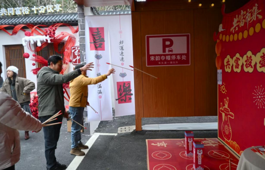 据悉,本次活动汇聚了8家优质品牌。除琳琅满目的年货,主办方还精心设计了富含寓意的文化互动环节,让市民在消费中沉浸式体验宋韵雅趣。“幸福加马”互动区排起了长队,参观者纷纷尝试手气,转动幸运转盘,抽取对应的新年福利标签,解锁专属的新年彩头。“投壶寄愿”宋式雅戏更是吸引了众多参观者体验,凝神、投掷,每当箭矢入壶,便引来阵阵喝彩,这不仅是一场妙趣横生的游戏,更是一份对新年目标的笃定与期许。这些活动让“众飨新年”理念,以更生动有趣的方式触达民众。
